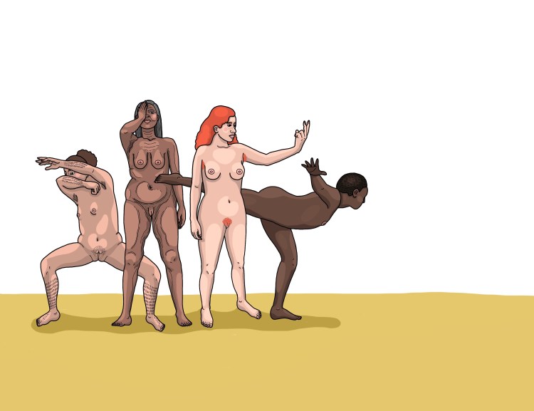 Medans vi dansade kom minnen fram som hade registreras i vĂ„ra kroppar, minnen som fanns i blodet, musklerna, benen, hĂ„ret, blicken, huden… VĂ„ra kroppar kom fram genom rörelserna. Först observerade vi hur vĂ„ra kroppar rörde sig och sedan lĂ€rde vi oss att kĂ€nna in olika kĂ€nslotillstĂ„nd för att kunna verbalisera och fysiskt arbeta fram Ă„tta dans positioner.